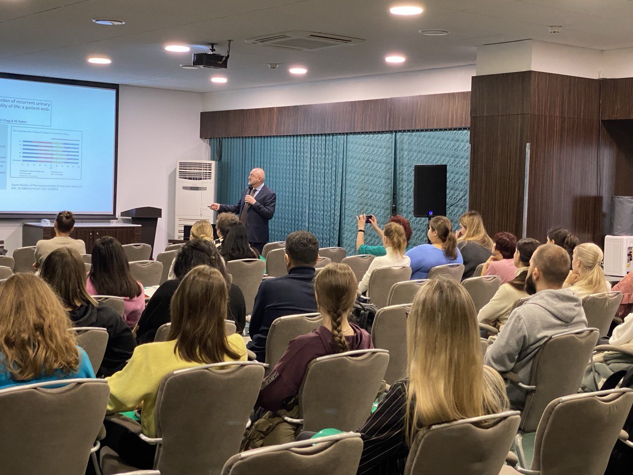 Школа была посвящена важным вопросам диагностики и лечения инфекций нижних мочевыводящих путей (ИНМП), в частности, острого цистита, который остается одной из актуальных проблем в общей врачебной практике. Обсуждались современные подходы к ведению пациентов с острыми и рецидивирующими инфекциями, в том числе эпидемиология заболеваний, а также взаимодействие различных лекарственных препаратов, применяемых в терапии.