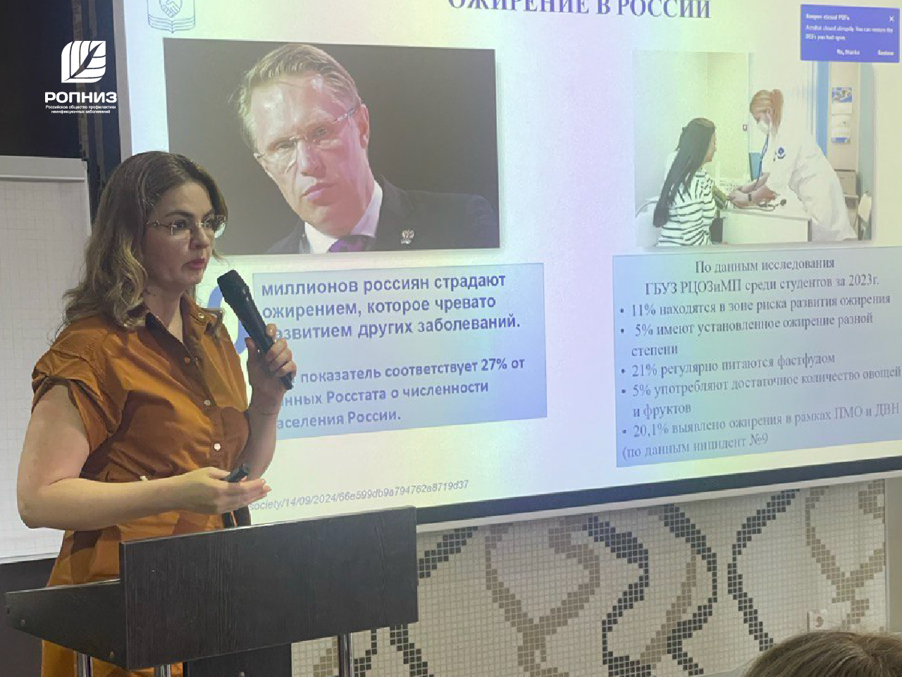 В пленарной сессии об ожирении как о серьезной медицинской и социальной проблеме рассказала Л.Ю. Дроздова – вице-президент РОПНИЗ по направлению «Медицинская профилактика»). Она