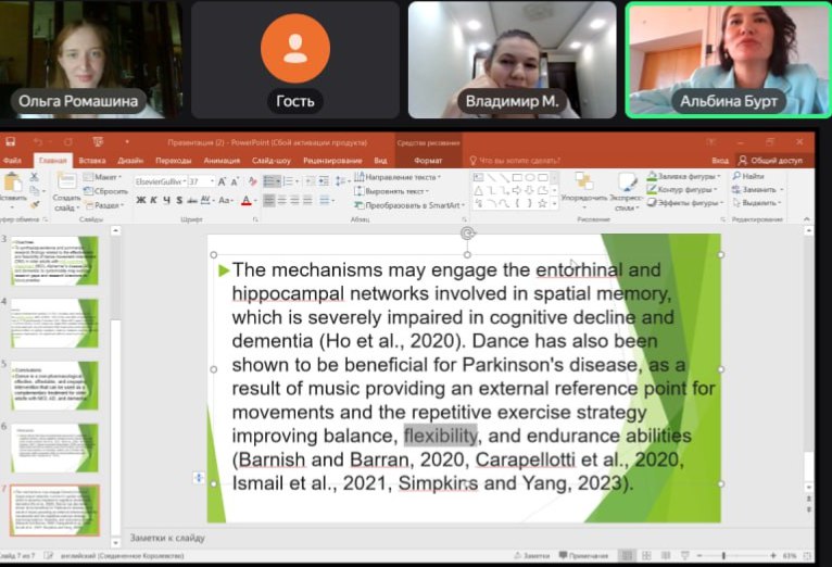 Мероприятие прошло в онлайн-формате, собрав активных участников из разных регионов. Как домашнее задание перед мастер-классом, все участники подготовили научные доклады на английском языке, продемонстрировав высокий уровень владения языком и глубокое понимание профессиональной тематики.