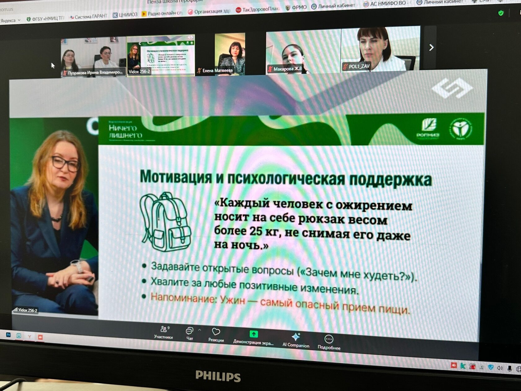 В ходе мероприятия обсуждались актуальные вопросы выявления и ведения пациентов с ожирением в системе центров здоровья, организационные подходы к профилактике хронических неинфекционных заболеваний, а также алгоритмы междисциплинарного взаимодействия. Формат профессионального диалога позволил обменяться региональным опытом, обозначить практические трудности и определить направления дальнейшего совершенствования работы.