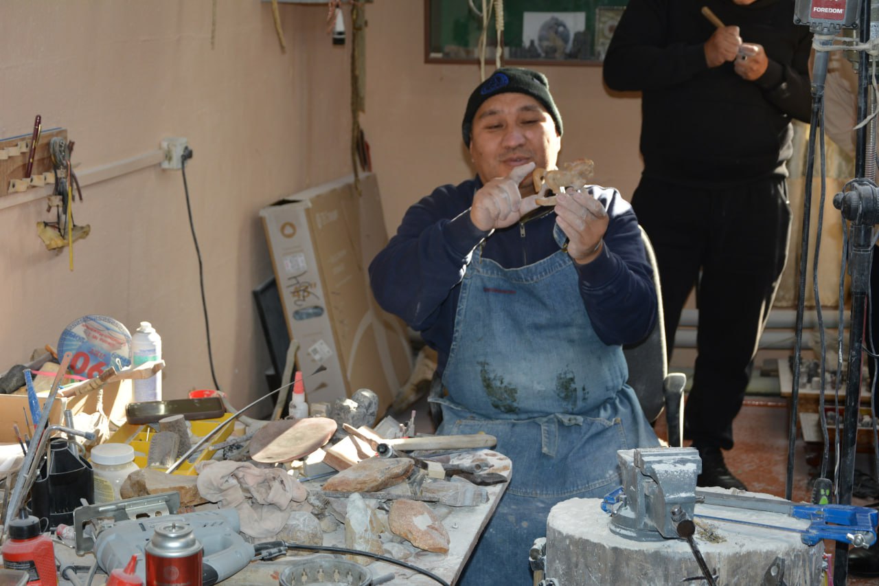 В Республике Тыва прошел ещё один уникальный мастер-класс в рамках проекта «Женщины за здоровье мужчин», реализуемого Советом Евразийского женского форума, ФГБУ «НМИЦ ТПМ» Минздрава России и РОПНИЗ. В этот раз под чутким руководством известного мастера, Орлана Сата, участники обратились к древнему искусству чонар-даш – резьбе по камню.